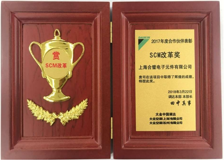 合璧榮獲大金空調(diào)(上海)有限公司&大金空調(diào)(蘇州)有限公司 17 年度“SCM 改革獎”